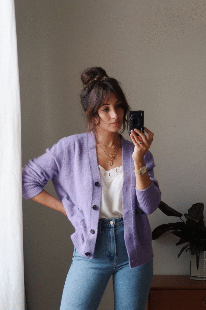 A button-up shirt with a soft cardigan gives a tidy and layered look. Pick a button-up that fits at the shoulders and a cardigan that is not too heavy. Chinos or jeans work well on the bottom.