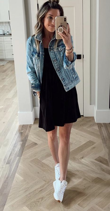 17. Hoodie Dress + Sneakers + Denim Jacket