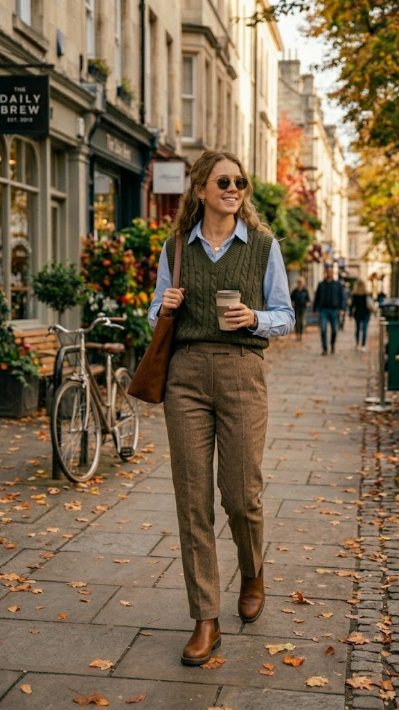 Layer a sweater vest over a button-down shirt. It looks polished without trying too hard.