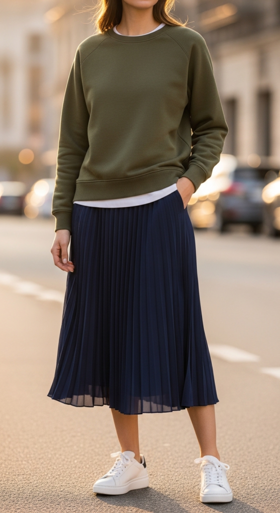 03: Sweatshirt + Pleated Skirt + Sneakers