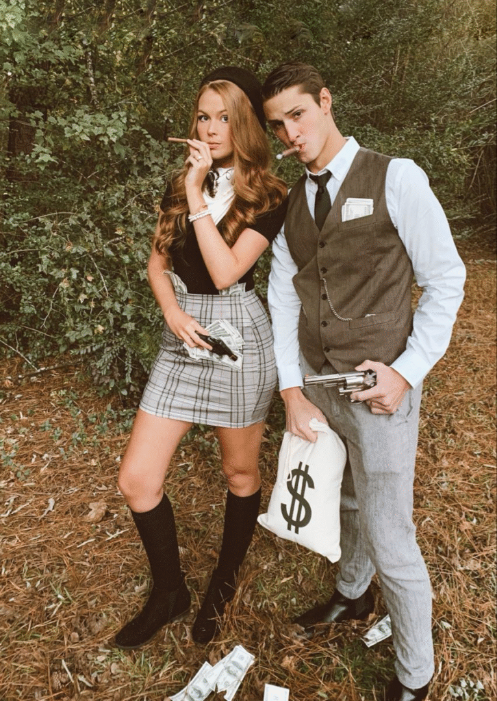 For a couple, pick outfits that match a single era, like the 1930s, by using thrifted suits, skirts, and hats. A fedora and a simple dress can signal the pair right away. Add small props like a fake camera, toy money, or a cloth bag to hint at the theme without real danger. Keep shoes comfortable for any walking or photos.