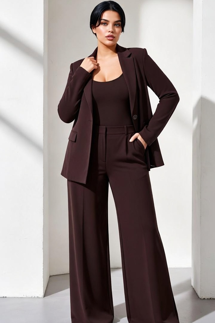1. Tailored Blazer + Bodysuit + Wide-Leg Trousers (Modern Power Look)